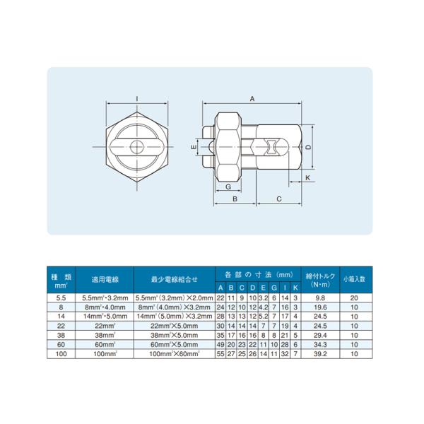 ●適用電線:38mm2・5.0mm