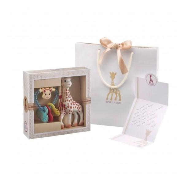 生まれて来た赤ちゃんにぴったりの「ソフィー」と「ラトル」のギフトセット。 カラフルなハートが揺れるキュートなラトルは、セットにのみ入っているアイテムです。