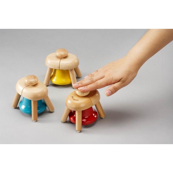 音階ごとに色分けされた8つのベルを叩くだけで、ドレミファソラシドの基本音階が自然と身につき、音感やリズム感を楽しく育てます。
