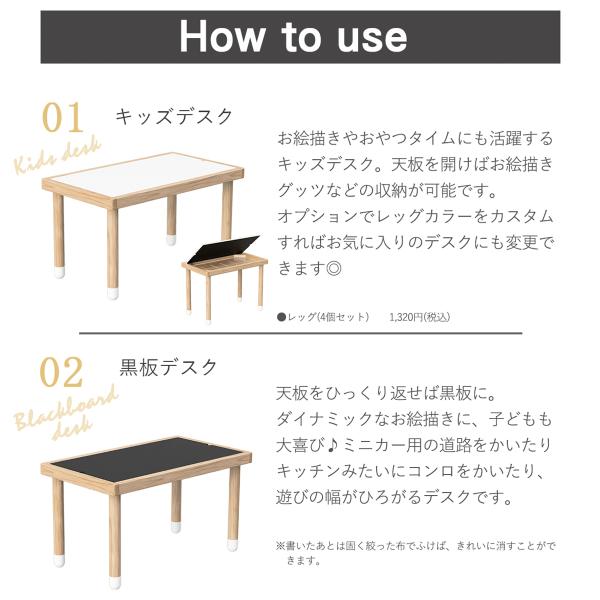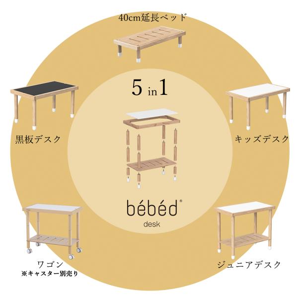 天板が黒板とリバーシブルになったキッズデスク。 ベベッドbaby・kidsシリーズの延長ボードとしても使えるデスクです。
