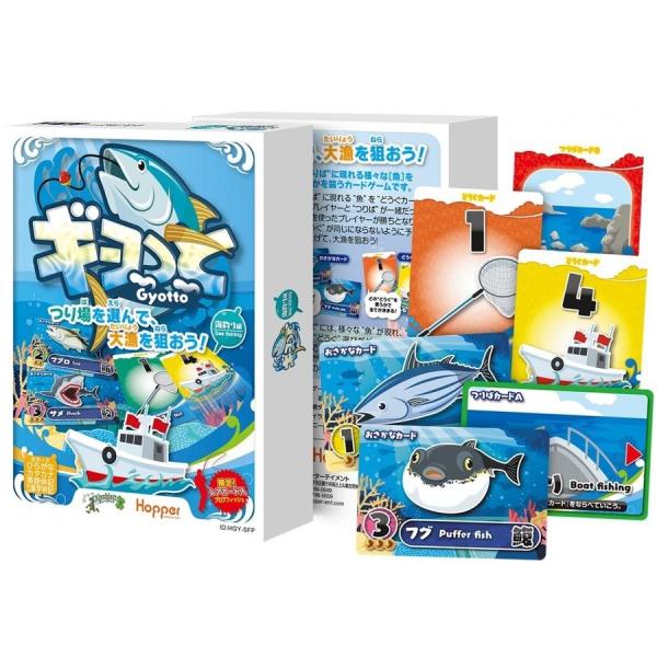 3ヶ所の“つり場”に現れる“魚”を“どうぐカード”を使って釣り上げるお魚釣りゲーム。他のプレイヤーと“つり場”が一緒だったり、どうぐ”が同じにならないように予測しながら、よりたくさんの“魚”を釣り上げて、大漁を狙おう!“つり場”には、様々な“魚”が現れ、“つり場”選びと“どうぐ”選びがゲームの勝敗を左右するので、毎回ハラハラドキドキな展開に!大物狙いか、それとも確実に釣り上げていくのか…その判断はプレイヤー次第!