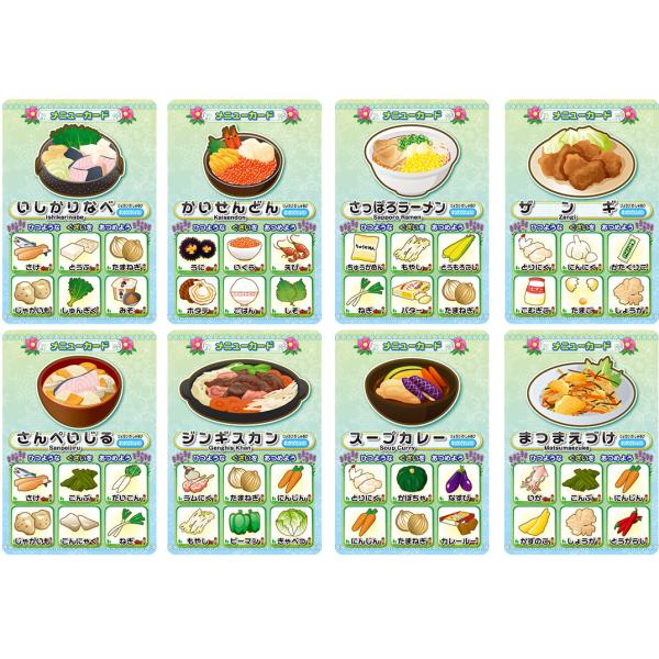 【セット内容】メニューカード:8枚 / ぐざいカード:48枚 キッチンカウンター:3枚1組×4セット 取扱説明書:1枚 / 取扱注意書:1枚