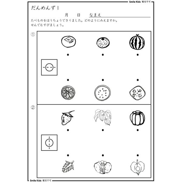 断面図の問題は果物や野菜を切ったらどうなるかを予想します。