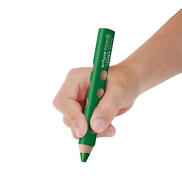 1本でクレヨン、色鉛筆、水彩画用の色鉛筆として3通りの描き方ができます。少ない力で効率的な描き心地の三角グリップ。