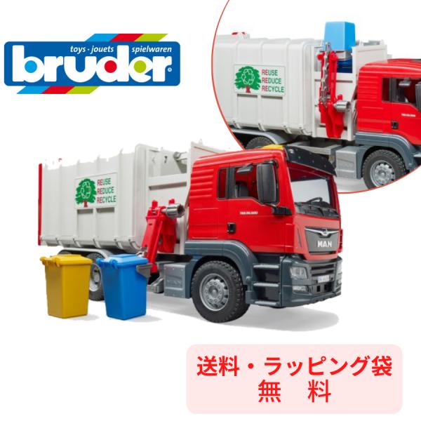 MAN 横開き ごみ収集車 RED【ポイントアップ+送料ラッピング無料】bruder ブルーダー 働く車 BR03761 人気 おすすめ プレゼント 男の子 こども おもちゃ 回収車