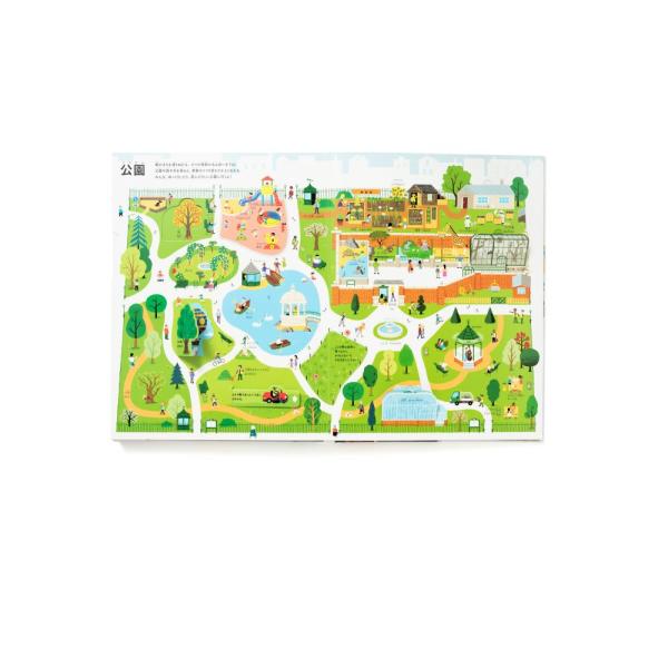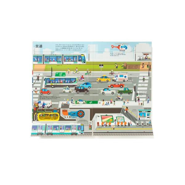 しかけを動かして、めくって、楽しみながら街のつくりを学べます。