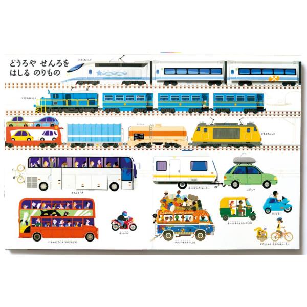 乗物からひろがる世界を楽しく学べます。動くしかけは60以上!世界累計18万部売れた大人気のしかけ絵本です。