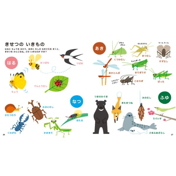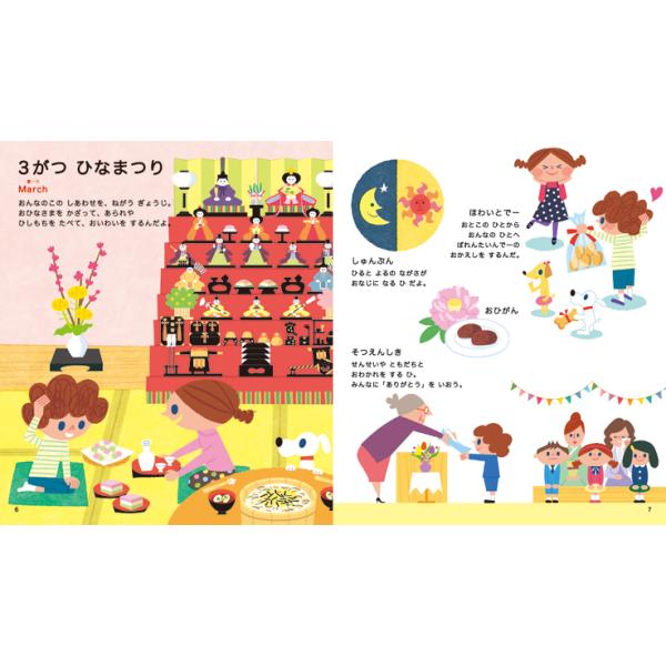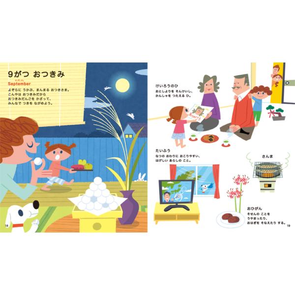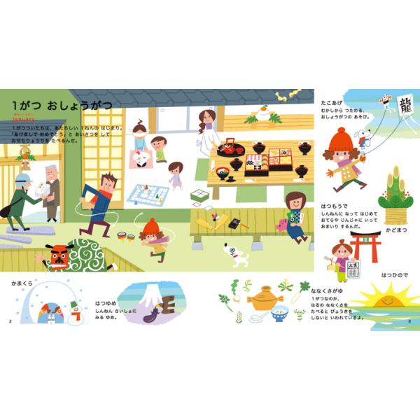 本作では、子どもに知ってもらいたい日本の伝統行事や、四季の食べ物・生き物を伝えます。