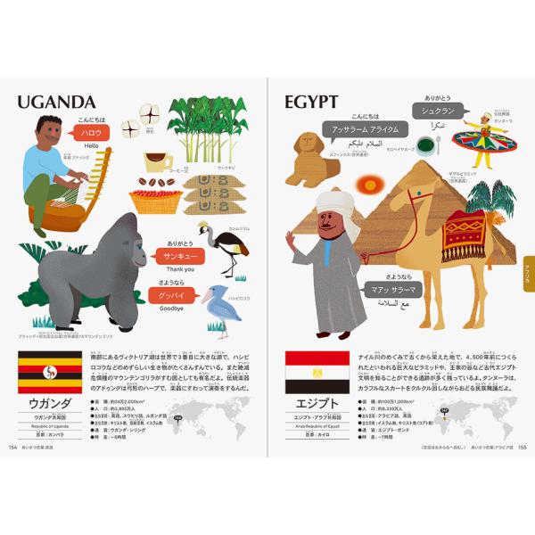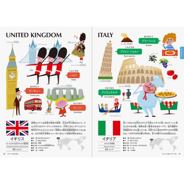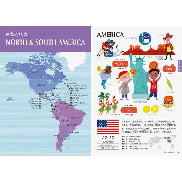 各国の国旗・人口・面積・言語・お金の単位・日本との時差など、詳しいデータもしっかり学べます。
