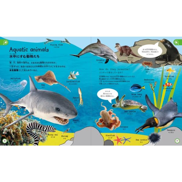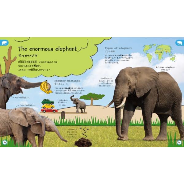 動物たちはどんなところにすんでるの? なにを食べてるの? どうやって眠るの? 動物の名前や種類から、驚くべき生態まで、動物に関するありとあらゆることがつまった、まったく新しいタイプの図鑑です。主な単語に英語を併記しているので、英語学習にもぴったり!