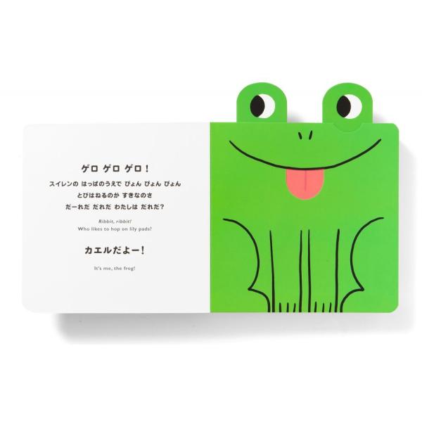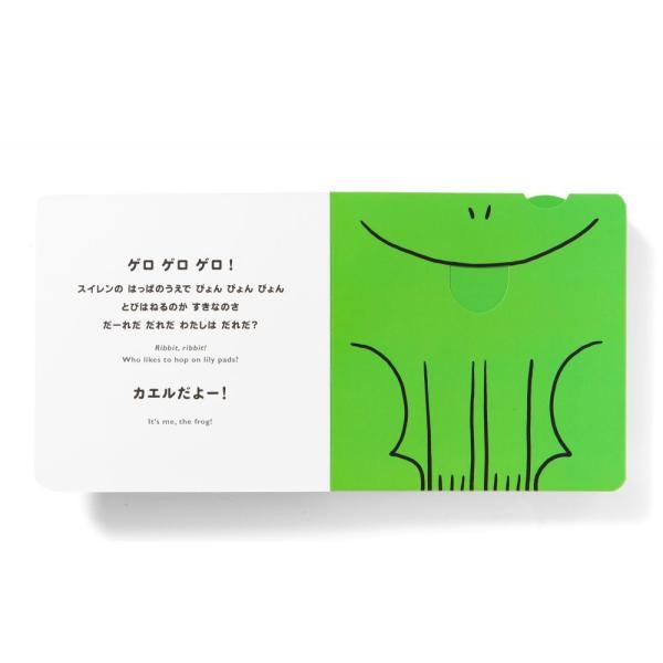 本の中のタブをひっぱると、かくれた動物たちの耳や目、鼻や口などが飛び出します。