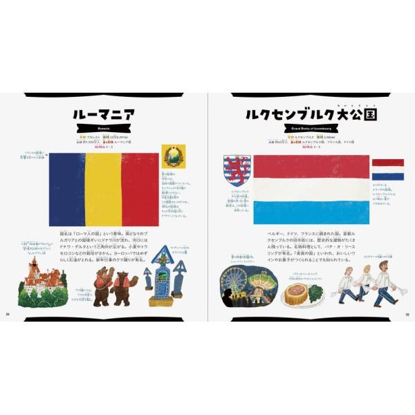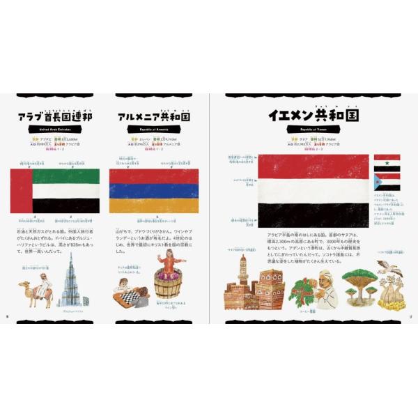 世界遺産や民族衣装・食べもの・特産品など、その国についてのあらゆることをイラストで楽しく紹介します。