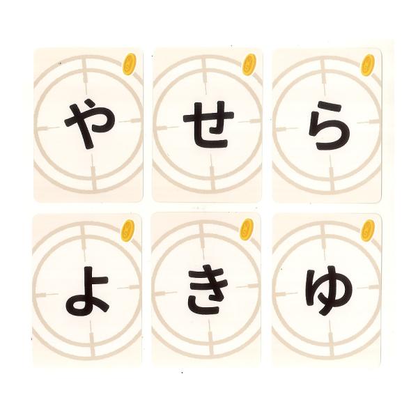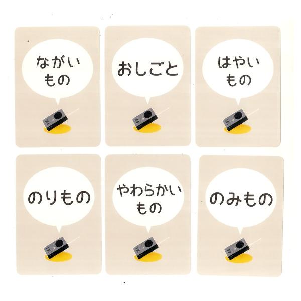 「文字」と「お題」に合う言葉を早く言った人がカードを貰えます。