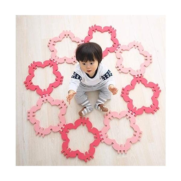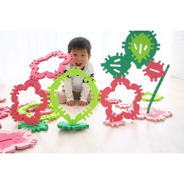 1組が大・中・小の3パーツに分かれるようにデザインされており、合計24パーツを使って床に敷いたり立体的に組み上げたり、子供たちが想像力を働かせながら全身を使って遊ぶことができます。