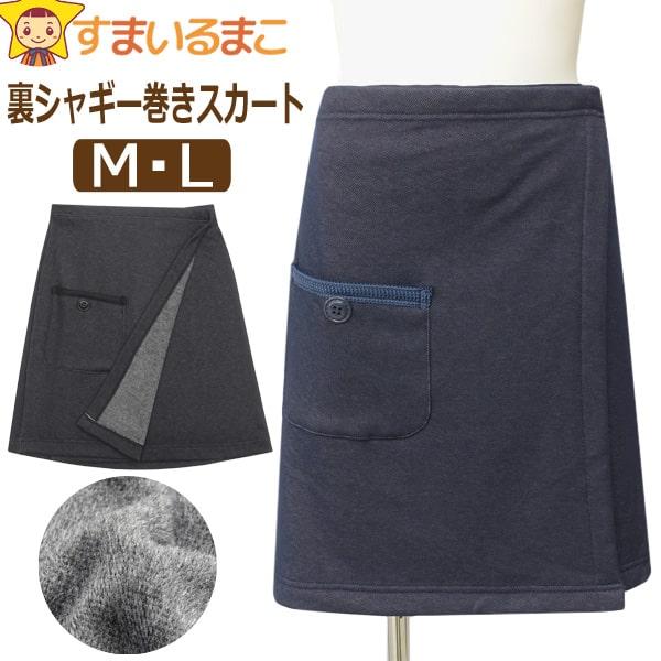 巻きスカート 防寒 レディース ショート丈 裏シャギー デニム調 あったか M L 236404 k1122