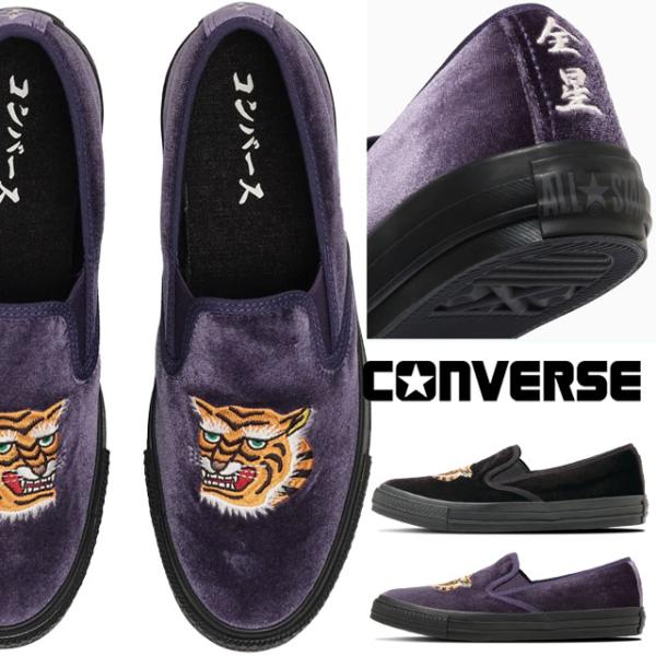 コンバース スニーカー オールスター カンフー スリップオン メンズレディース スリッポン カンフーシューズ ベルベット トラ 刺繍 パープル 31317180 31317181