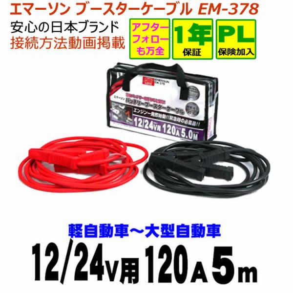 エマーソン ブースターケーブル EM378 【12/24v用 120A 5m】