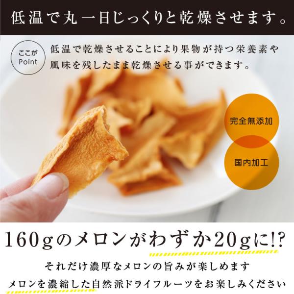 ドライフルーツ 砂糖不使用 無添加 メロン 20g 送料無料 ドライメロン 国内加工 お菓子 おやつ ヨーグルト かわいい プチギフト ポイント利用 爆買
