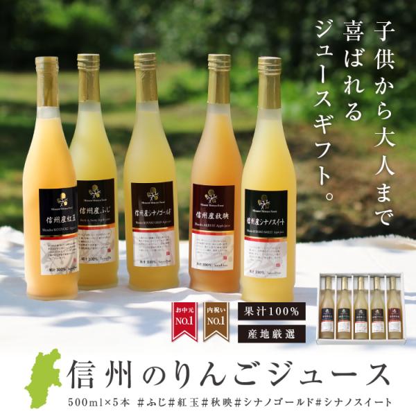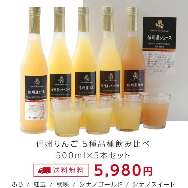 ジュース ギフト りんごジュース 5本ギフトセット 国産 5つの味が楽しめる 送料無料 ふじ 紅玉 シナノゴールド 秋映 シナノスイート 内祝 プレゼント 爆買