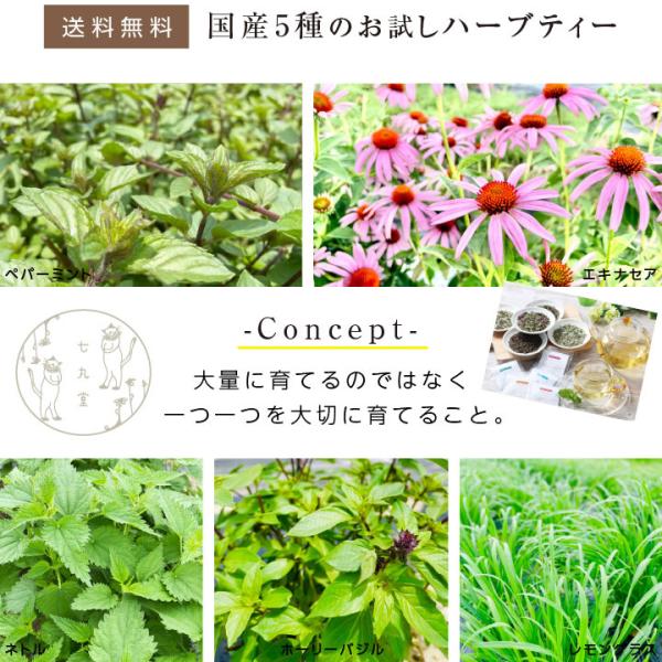 ハーブティー 5種お試しセット 送料無料 栽培期間 農薬不使用 無農薬栽培 ペパーミント エキナセア ネトル ホーリーバジル レモングラス オーガニック 爆買