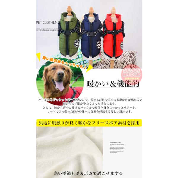大型犬 中型犬 用 暖か ジャケット ハーネス 一体型 犬 ベスト ウェア ペット 服 防水 防風 防寒