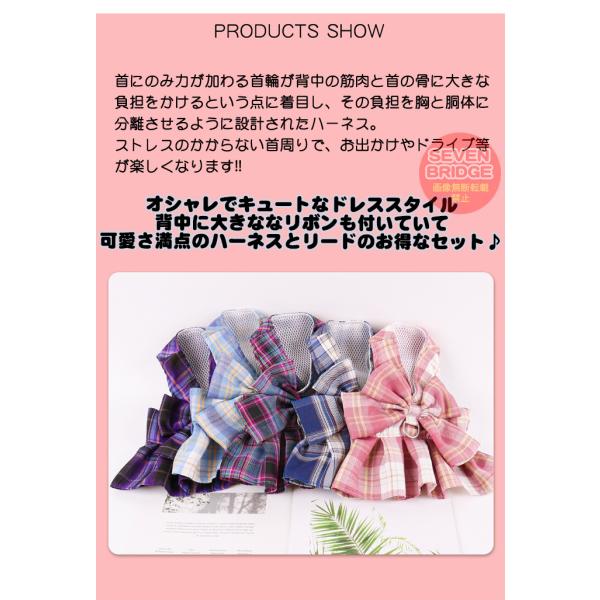 犬 ハーネス リード 付 ドレス リボン チェック ウェアハーネス ペット 服 ワンピース 胴輪 キャット ドッグ