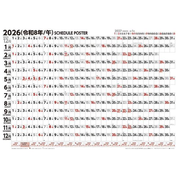 スケジュールポスター B2ヨコ型 2026年 壁掛けカレンダー CL-642 CL26-642