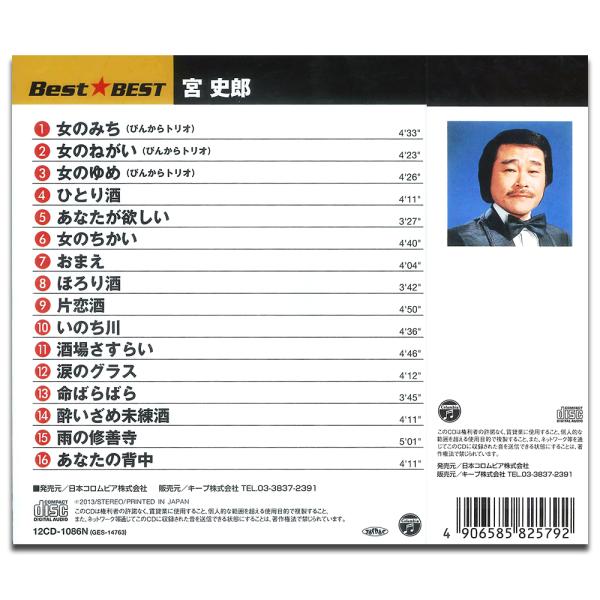 2013年2月27日リリースの宮史郎のベストヒット集。ぴんからトリオ、兄弟、ソロと活躍した宮史郎。大ヒット「女のみち」をはじめ、「女のねがい」「女のゆめ」といった“女”シリーズや「片恋酒」「ひとり酒」の“酒”シリーズなど全16曲収録。