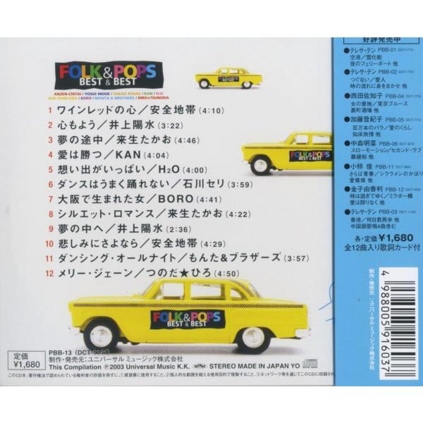 フォーク&ポップスベスト盤。ワインレッドの心(安全地帯)、夢の中へ(井上陽水)、ダンシング・オールナイト(もんた&ブラザーズ)、メリー・ジェーン(つのだ★ひろ)等を含む全12曲収録。