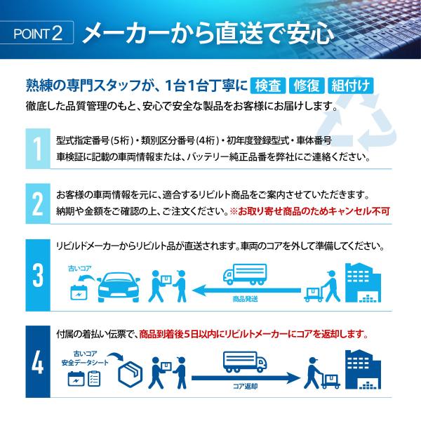 全セルリビルト品のため、純正と変わらないクオリティを実現