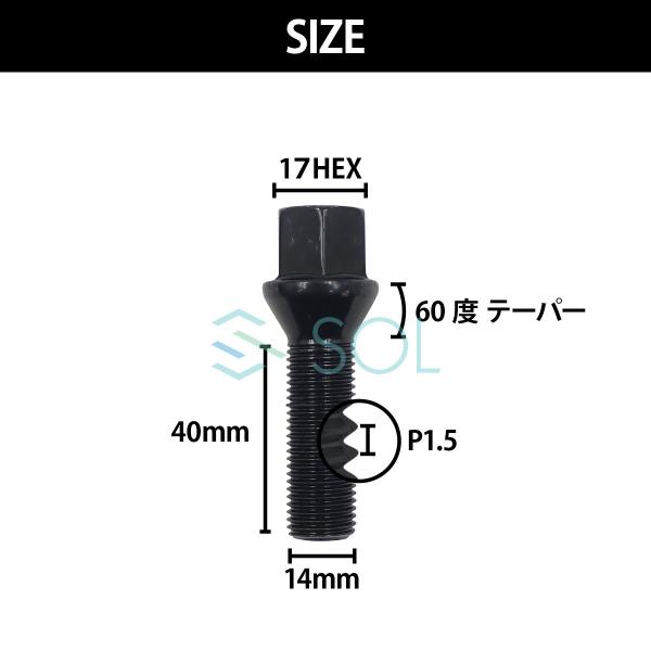 ベンツ X167 X166 X164 W167 W166 C292 M14 P1.5 60度 テーパー ホイールボルト 首下40mm 17HEX ブラック 10本セット