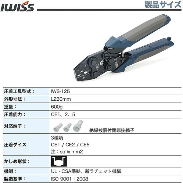 圧着工具 圧着ペンチ JIS規格 準拠品 絶縁被覆付閉端接続子 CE1/2/5 熱収縮タイプ防水形圧着端子用 絶縁閉端子 圧着 工具 絶縁被覆 絶縁端子 IWS-125 宅配便