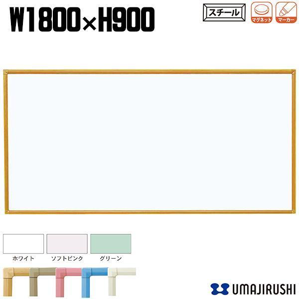 壁掛 ホワイトボード 無地 幅1800mm 高900mm スチール 樹脂枠 木目枠 マグネット/イレーサー/マーカー付 RCV36 馬印 クリーンボード スチールホワイトボード