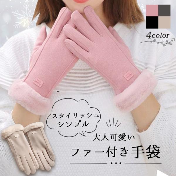 手袋 レディース スマホ 対応 防寒 ファー 裏起毛 冬 おしゃれ かわいい 暖かい スマホタッチ 自転車 通勤