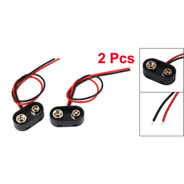 uxcell バッテリースナップ 9Vバッテリークリップコネクタ 電池接続ホルダー 2個入り ブラック シルバートーン レッド プラスチック メタル 15cm T型コネクター