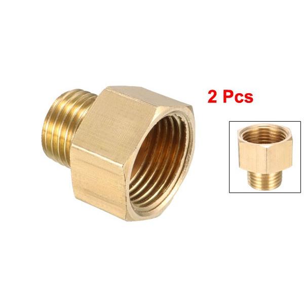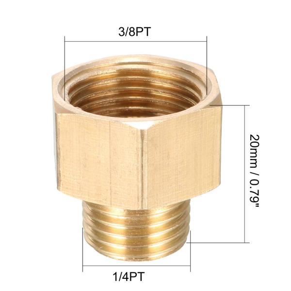 uxcell ねじ継手 ねじパイプ継手 六角ブッシュアダプター ゴールドトーン ブラス 1/4PTオスx3/8PTメス 2個入り