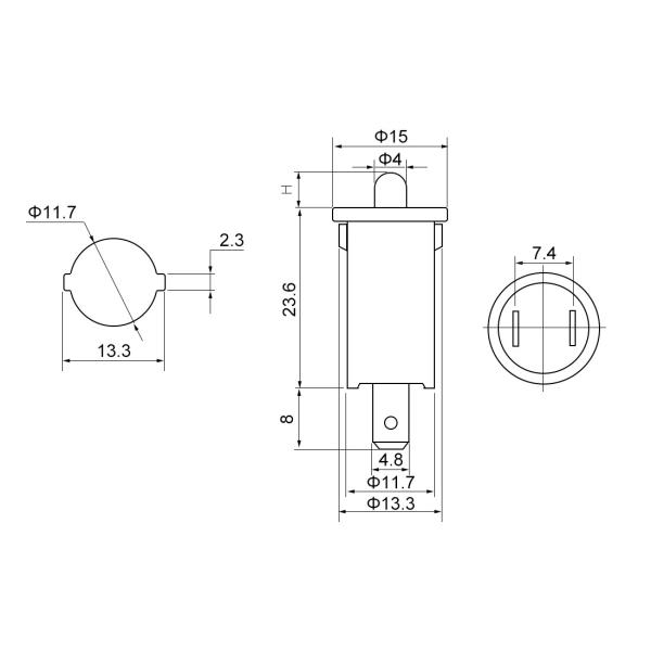 15mm長さの押しの瞬時型冷蔵庫スイッチ。
