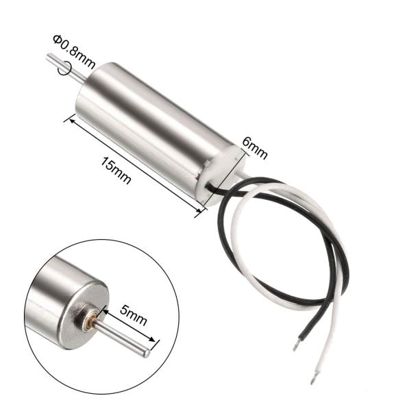シャフトサイズ: 0.8 x 5mm(D*L); モーターサイズ:6 x 15mm(D*L)