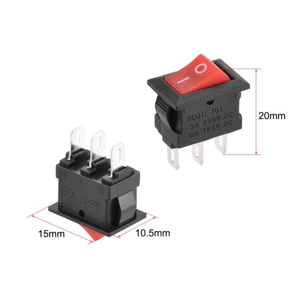 uxcell ロッカースイッチ ON/OFF AC 250V/3A 125V/6A ミニボートロッカースイッチ レッドトグルスイッチ 5個入り