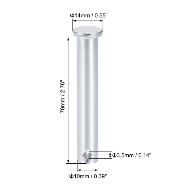 uxcell 単穴クレビスピン 10mm x 70mm フラットヘッド 亜鉛めっき固体鋼 リンクヒンジピン 4個