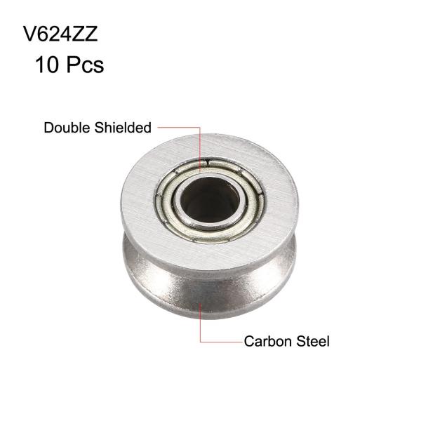 uxcell V624ZZ深溝 ガイドプーリーレールボールベアリング 4x13x6mm ダブル メタル シールドカーボンスチール ベアリング 10個