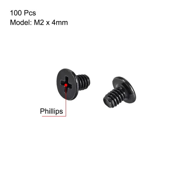 uxcell ラップトップノートブックコンピューターのネジ M2x4mm プラスネジ ねじ頭ファスナー3.8mm径 IBM ブラック 100個