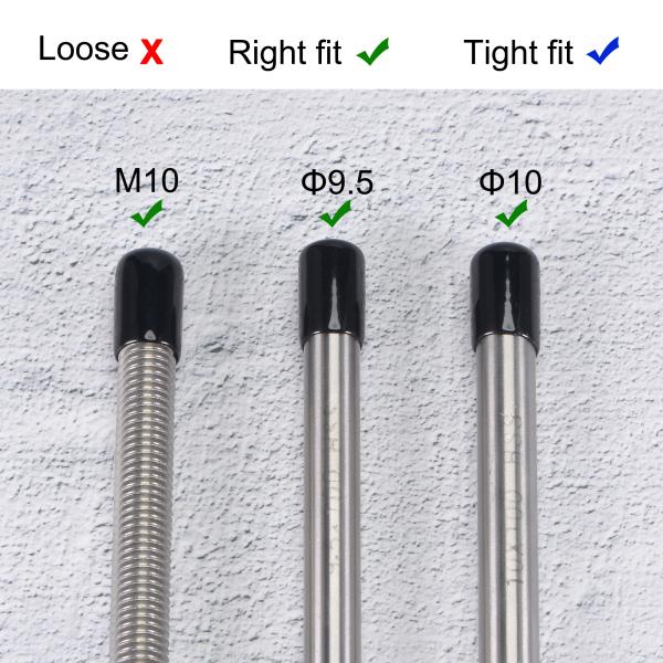 【サイズの選択】ゴム素材は柔らかく弾力性があるため、保護する製品の外径よりわずかに小さいゴム製エンドキャップを選択することをお勧めします。例えば:製品の外径は直径9.8 mmです。9.5 mmのゴムカバーを選択してください。