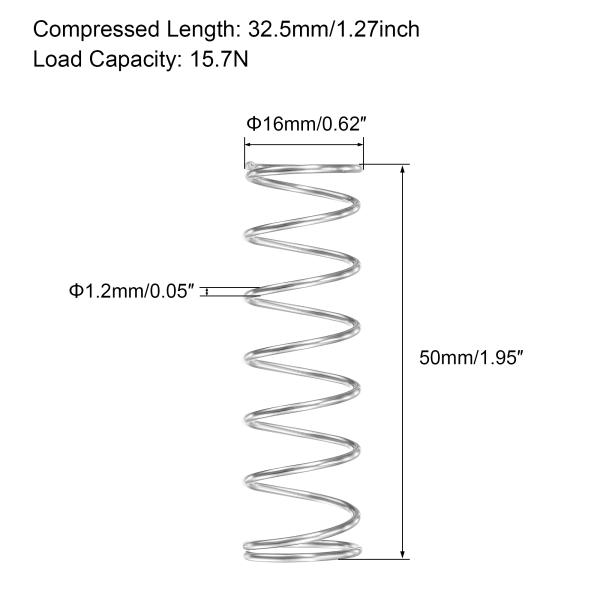 uxcell 圧縮バネ 外径16mm ワイヤーサイズ1.2mm 圧縮長さ9mm 自由長50mm 304ステンレス鋼 耐荷重15.7N 5個