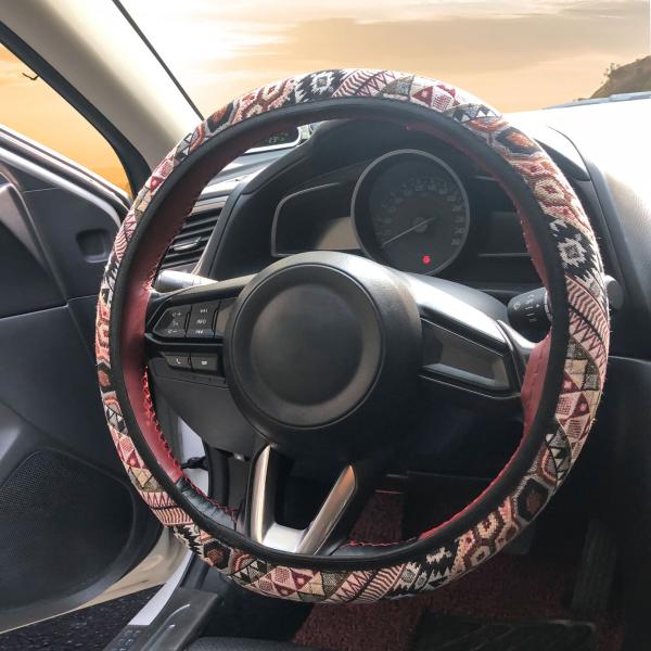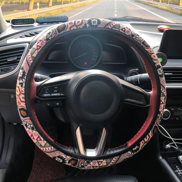 X AUTOHAUX ハンドルカバー 37-38 cm 38 cm マルチカラー印刷付き カー ボヘミアンスタイル
