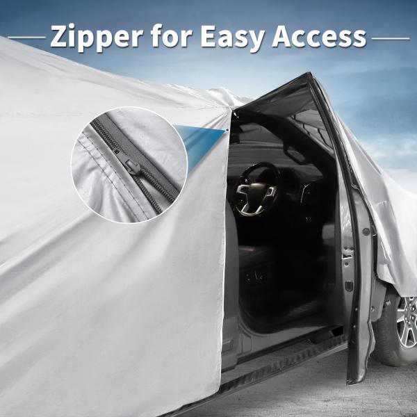 【ドア開閉可能・蛍光反射ラインで安全運転】カバーを装着したまま、ドアを開閉できるので、簡単に車内へアクセスできます。忘れ物をしても安心です。蛍光反射ラインが前方・後方・サイドに配置されており、夜間や暗い場所でも車