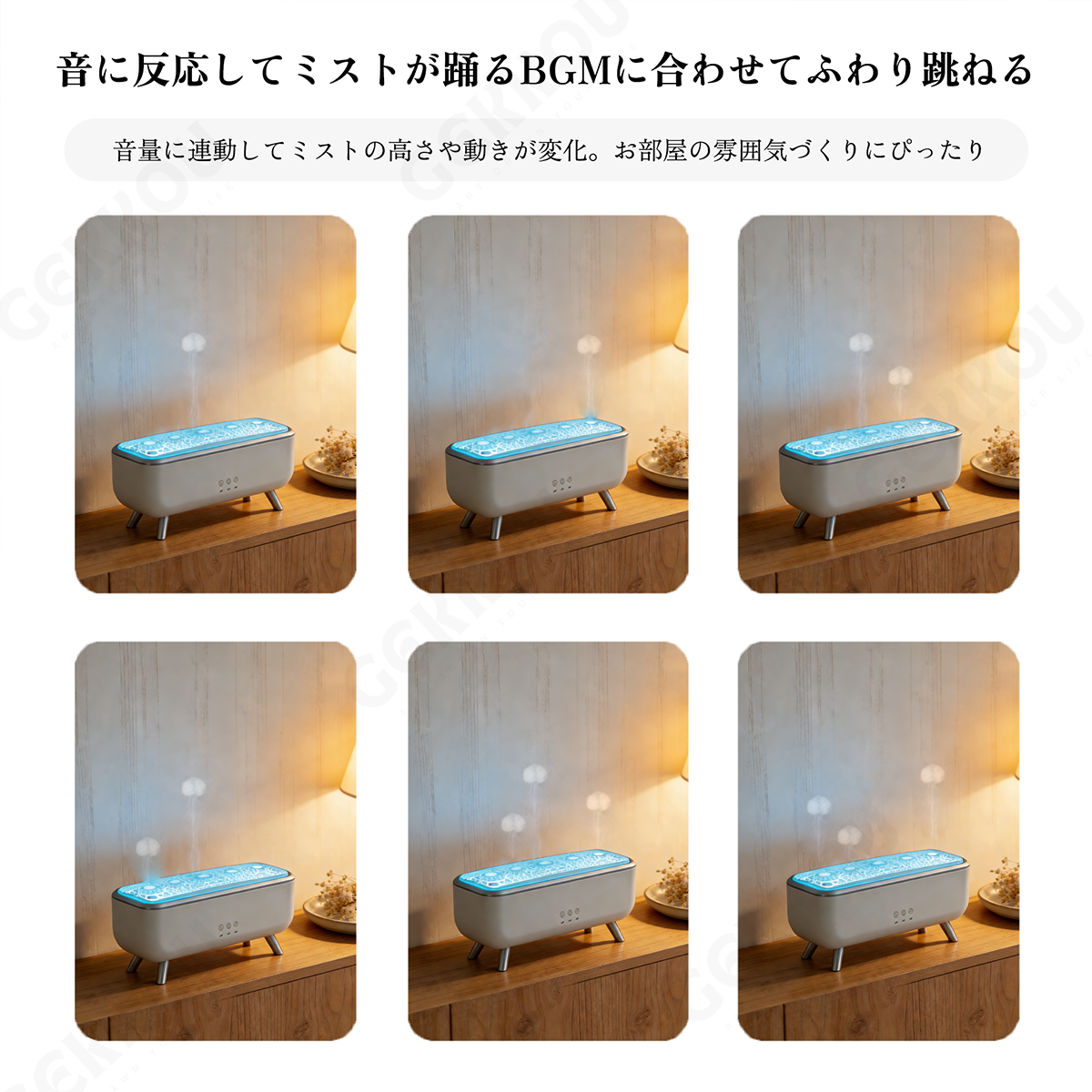 リズムに合わせてミストが反応するため、音楽と一緒に楽しむリラックス演出が可能。鑑賞性の高いクラゲミストが魅力。