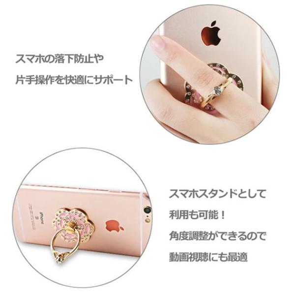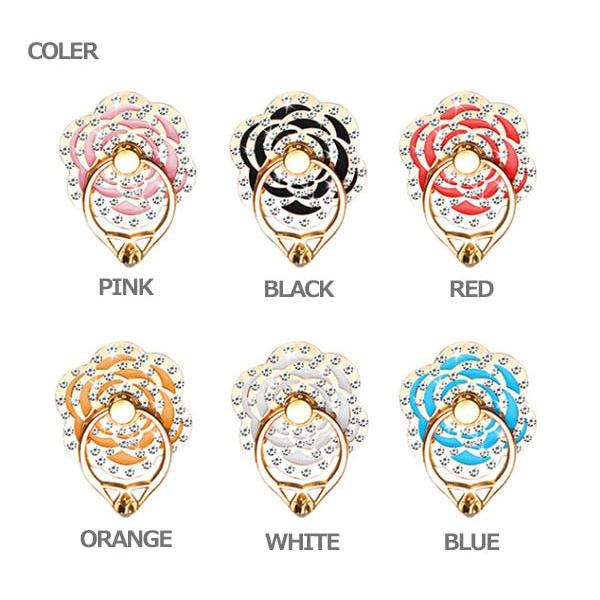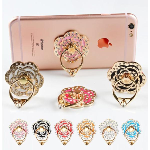 スマホリング スタンド ラインストーン フラワーデザイン リングホルダー バンカーリング 花 落下防止 キラキラ かわいい 訳あり(ストーン欠け)