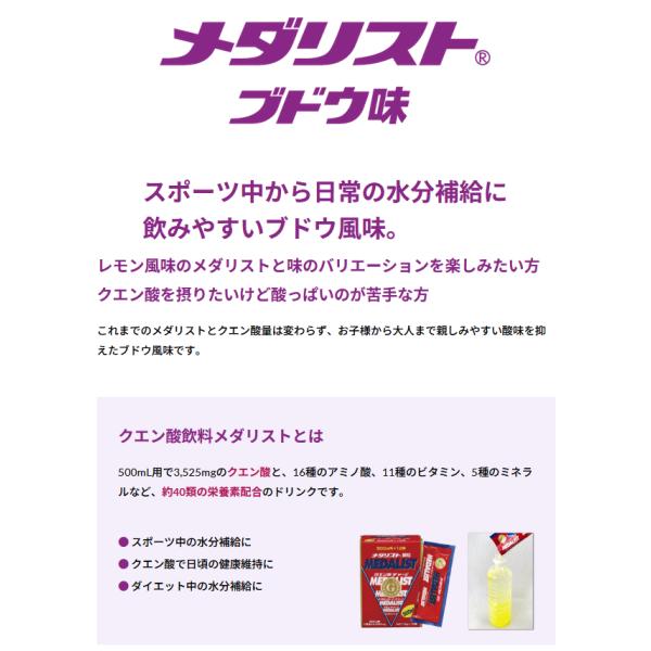 メダリスト MEDALIST 顆粒 ブドウ味 クエン酸飲料 クエン酸チャージ サプリメント [500mL用 15g×12袋] 889897【1点までメール便OK】