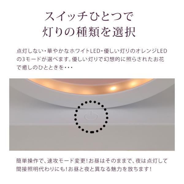 スイッチ一つでで、点灯なし、華やかなホワイトLED、優しい灯りのオレンジLEDの3モード変更が選べます!